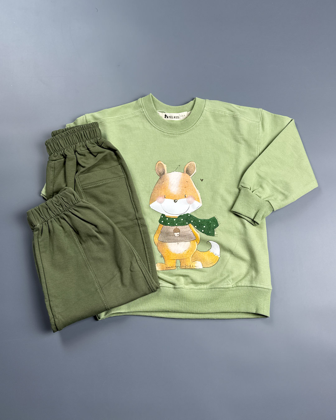 ست بلوز و شلوار چاپ ترام یل کیدز آوان روباه سبز