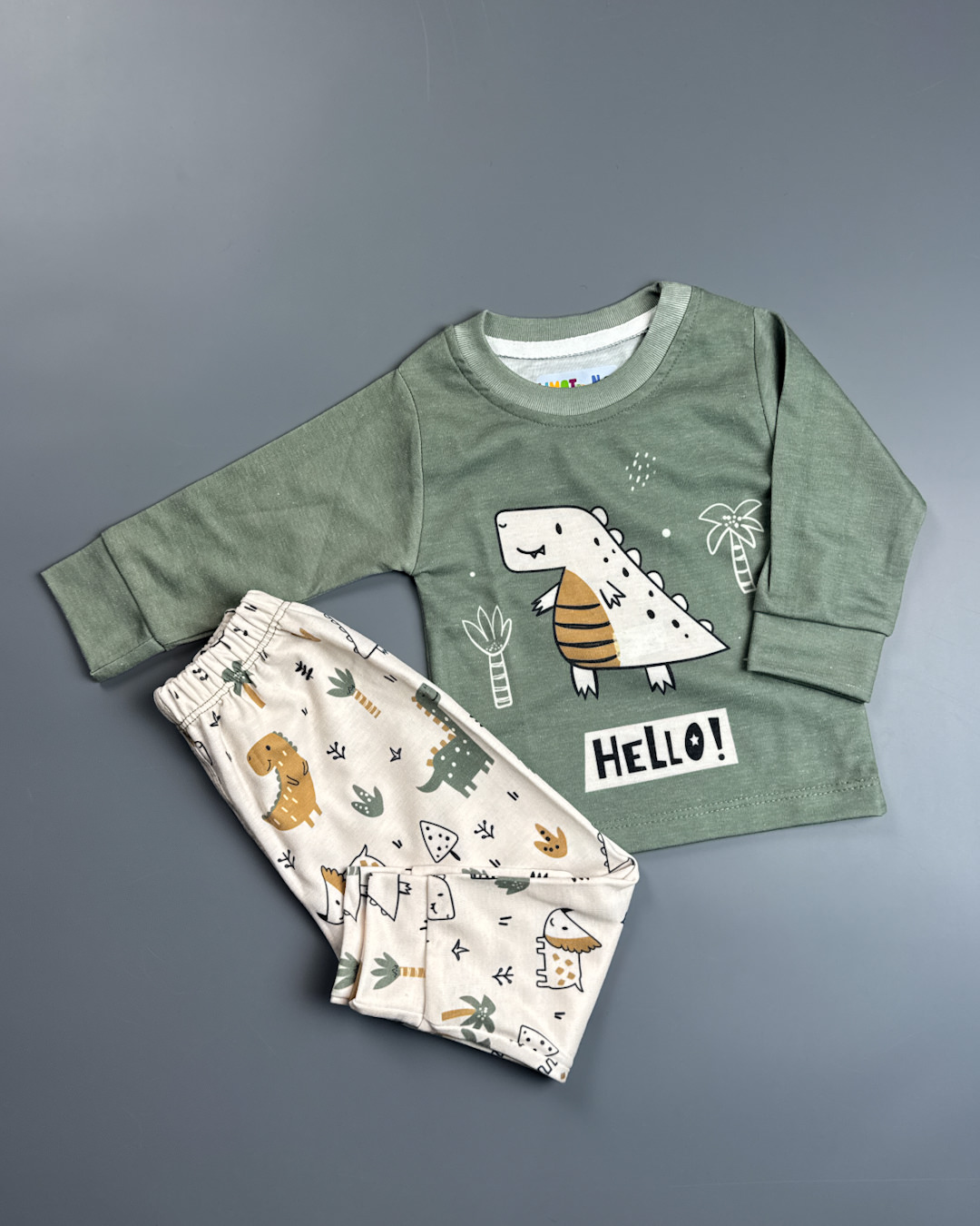 ست بلوز و شلوار خانگی لیموتین طرح دایناسورسبز